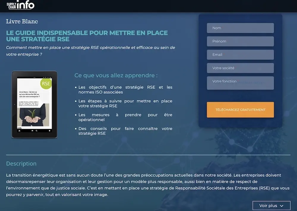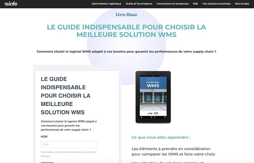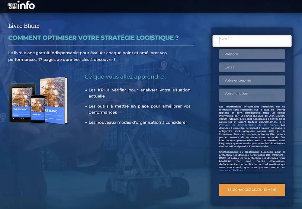 Cette mission avait pour but d'optimiser la conversion de pages livre blanc (lead magnet) afin d'augmenter le nombre de prospects visiteurs pour le salon SITL (Salon International du Transport et de la logisitique). Ces pages sont hébergées sur le blog du salon et présentaient un taux de conversion initial de 27%.