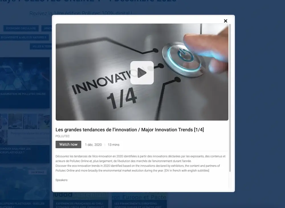 Pollutec, le salon dédié à l'environnement souhaitait mettre en place une plateforme de webinaires pour la première édition de Pollutec Online en 2020. Dans un contexte où les salons physiques étaient interdits suite à la Covid, les webinaires offraient une nouvelle source de visibilité et de rémunération.